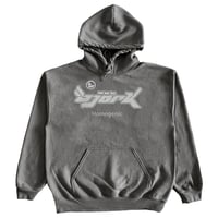 screen printed by hand on 100% cotton heavy weight hoodie.